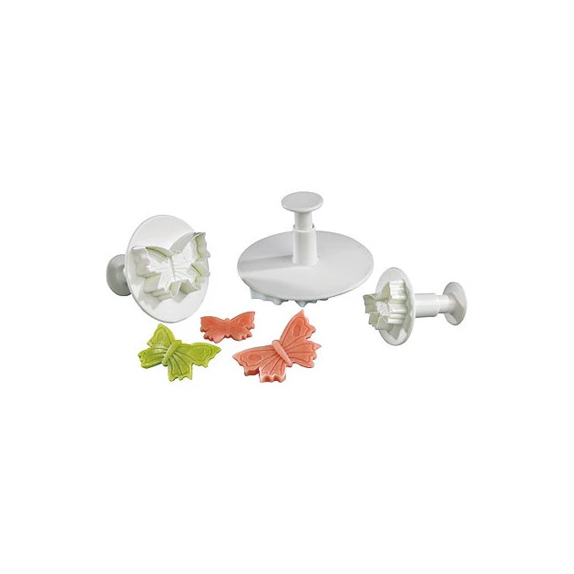 Jeu de 3 Emporte pièces à Poussoir. Le poussoir facilite l’extraction de la pâte découpée.