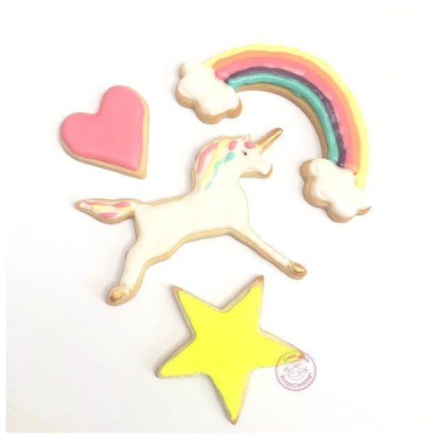 Avec une Licorne de 12 x 9 cm, vous allez rendre les gourmands heureux. Décorez vos biscuits sur le thème Licorne avec de la glace royale sur laquelle vous saupoudrerez des paillettes alimentaires pour un résultat sublime. L’entretien de vos 4 Découpoirs sera un jeu d’enfant, il vous suffira de les nettoyer avec une éponge et de l’eau chaude, puis ensuite de les essuyer.