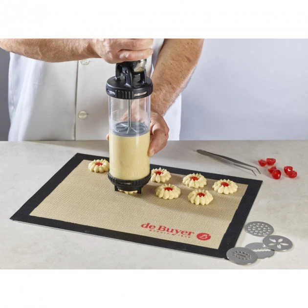 Enfin, vous pourrez confectionner des biscuits de toutes les formes, car le Coffret Le Tube est fourni avec un Kit à Sablés se composant de 13 disques interchangeable en inox. Utilisé en Presse à Biscuits, Le Tube De Buyer vous permettra de réaliser des biscuits en forme de fleurs, de c½urs ou encore de sapins !