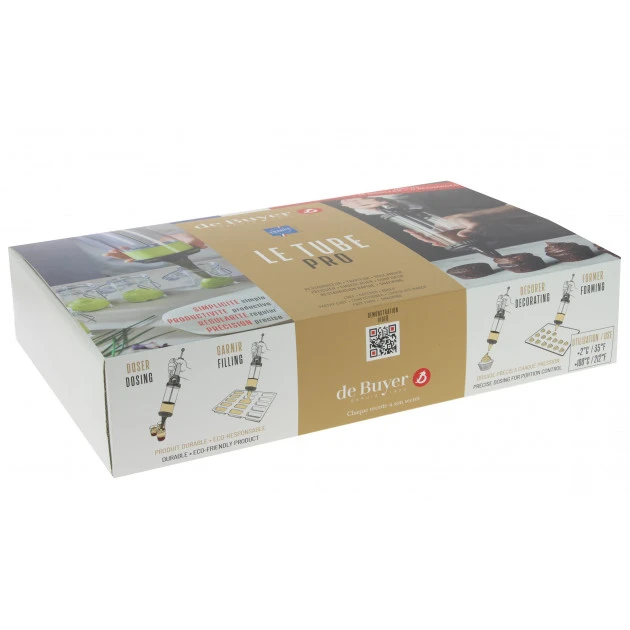 Pour les professionnels de la pâtisserie ou de la cuisine : rien de tel que ce Coffret Le Tube Pro De Buyer. Fourni avec 4 recharges et leurs couvercles hermétiques : il vous sera facile de passer d’une préparation à une autre. En plus, le dosage du Piston à Pâtisserie est réglable : délivrant ainsi 1 à 5 cl selon votre convenance.