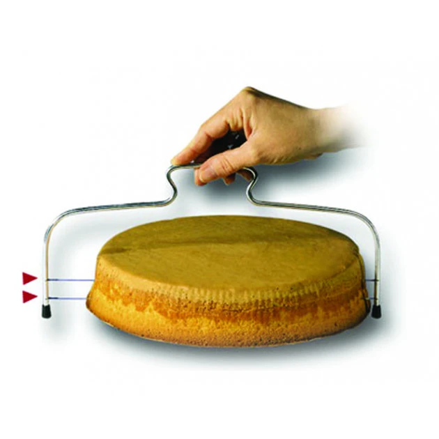 La double lyre à génoise permet de couper la génoise en 3 couches parfaitement régulières, en toute sécurité. L’écartement des fils est réglable.