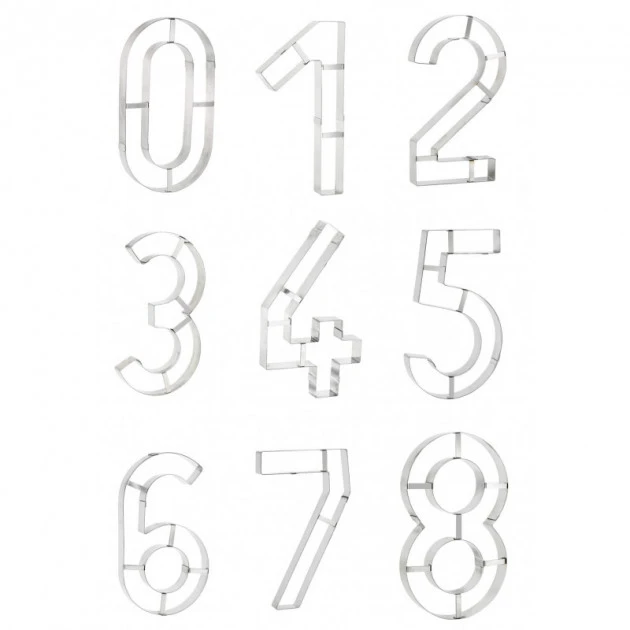 Le Grand Emporte Pièce Chiffre est disponible des chiffres 1 à 8 (6 et 9 identiques), ainsi que le lot de 9 Emportes Pièces Chiffres.