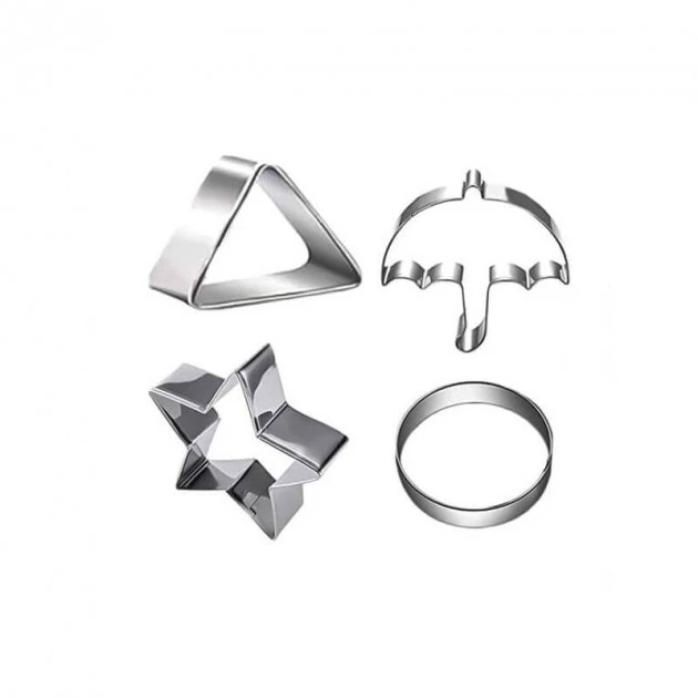 - 4 découpoirs en inox : cercle, triangle, étoile, parapluie
