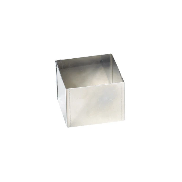 Cadre Carré individuel, appelé également Nonnette, pour réaliser des entrée, accompagnement ou dessert (petit gâteau, entremets, mousse…). La forme particulière des Nonnettes permet de monter plusieurs couches les unes sur les autres très facilement.
