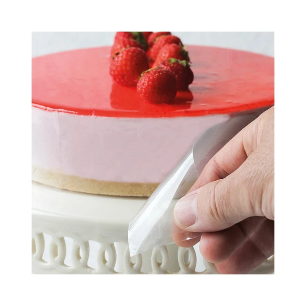 Afin que votre charlotte aux fraises ou que votre entremets au 3 chocolats se démoule facilement, pensez à découper une bande de Rhodoïd afin de chemiser votre moule. Composé d’acétate de cellulose, il présente une surface lisse et brillante.